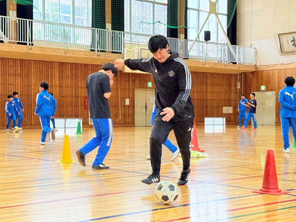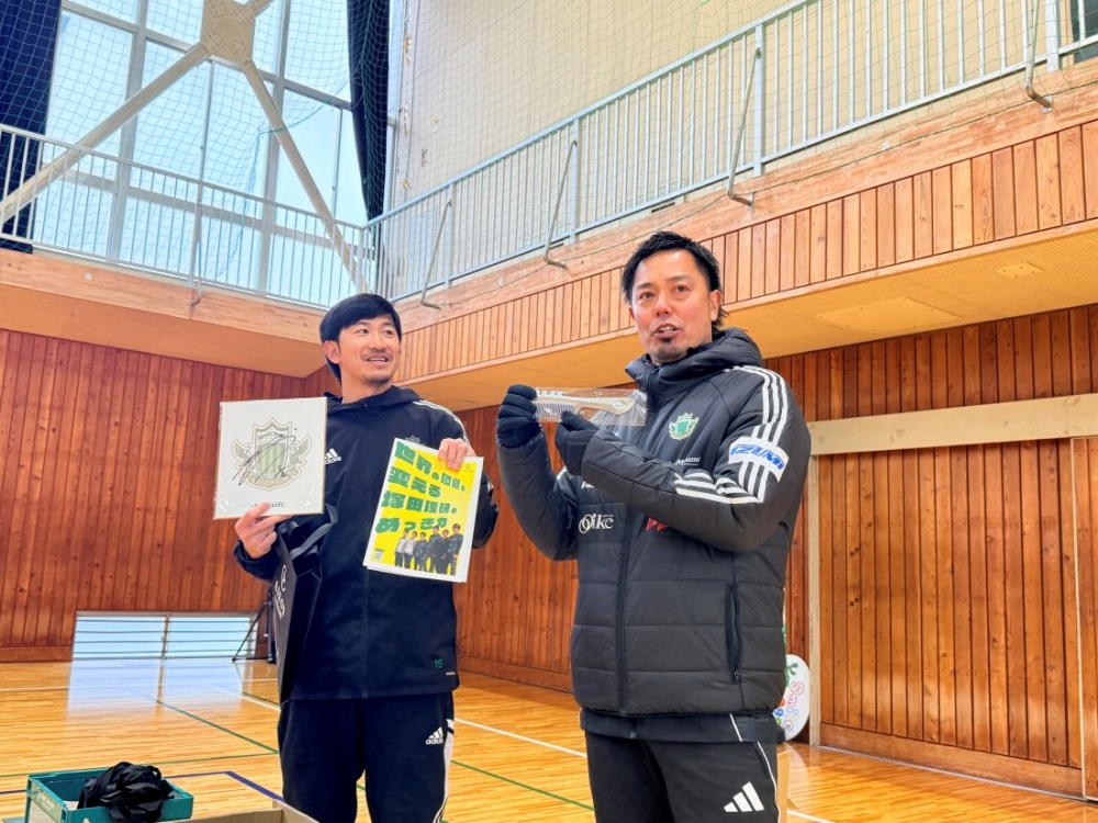 1月24日(土)駒ヶ根市社会体育館で開催された「塚田理研工業株式会社プレゼンツ松本山雅FCサッカー教室」に、松本山雅FCからクラブプロモーション担当の片山真人とグッズ担当の山本大貴が講師として参加しました。