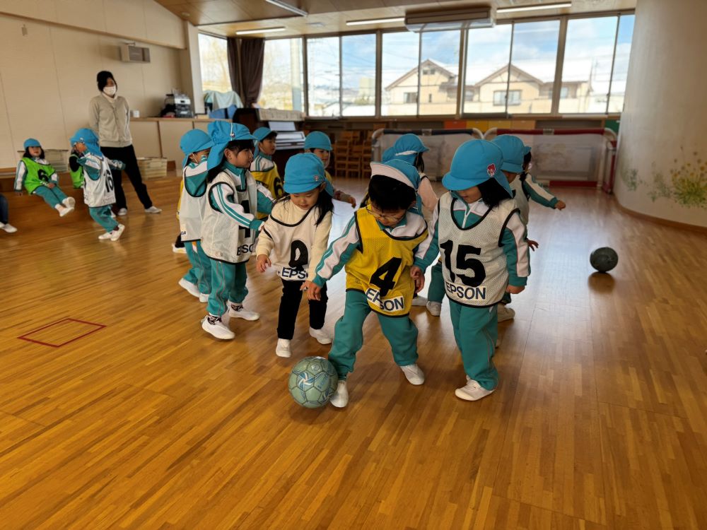 1月30日(金)聖テレジア幼稚園の年少・年中・年長さんを対象に巡回指導を行い、スクールコーチの河野と田中が参加しました。