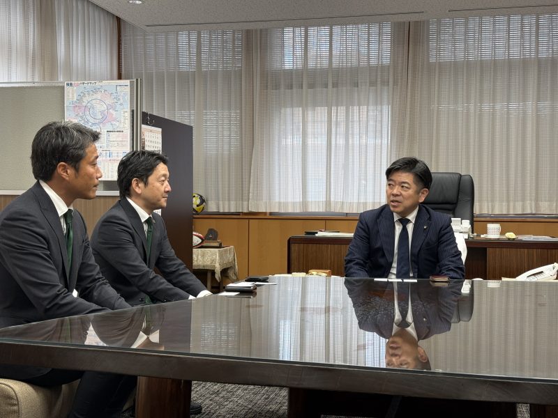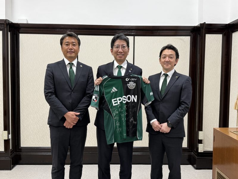 株式会社松本山雅の小澤修一代表取締役社長、スポーツダイレクターの都丸善隆が、鹿児島市の下鶴隆央市長、鹿児島市議会の川越桂路議長、伊地知紘徳副議長を表敬しました。