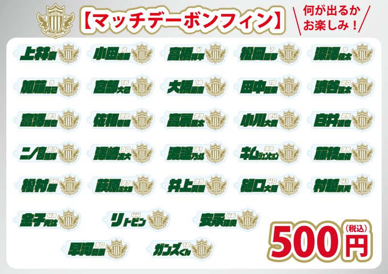 第2節藤枝MYFC戦のマッチデーボンフィンには、選手のネームチャームが付属します!
