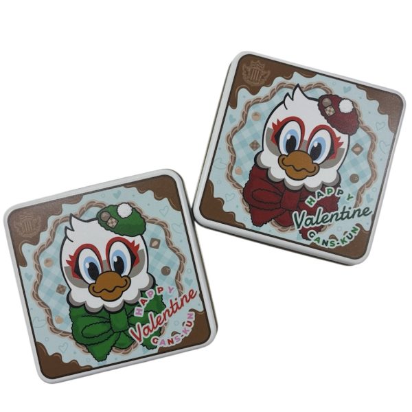 スクエア缶(バレンタインガンズくん レッド/グリーン)