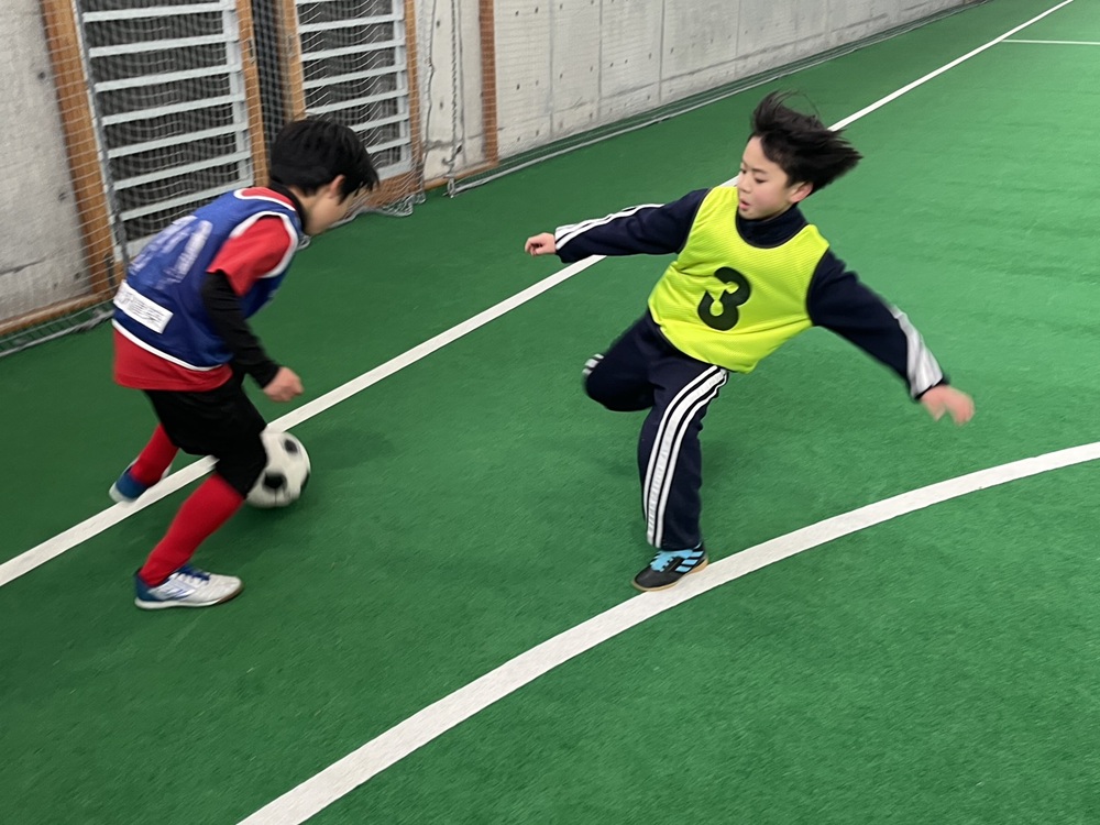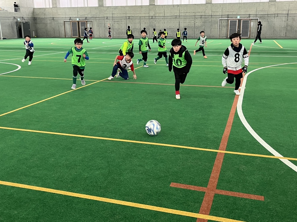 サッカー教室ではボールタッチ、ドリブル練習を行いたくさん試合も行いました。