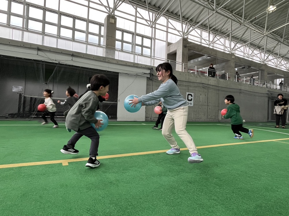 未就学児の運動あそびでは、様々な動作が入った運動を行い、頭と身体もたくさん動かしました。