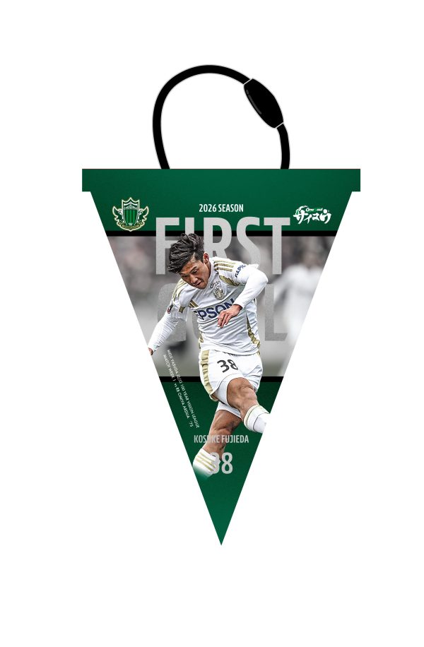 百年構想リーグ第1節大宮戦でチーム初ゴールを決めた瞬間の、藤枝選手のシュートシーン写真を使った特別なキービジュアルを、各グッズに落とし込んだスペシャルなアイテムとなります。