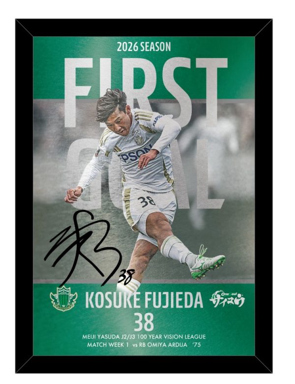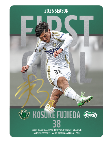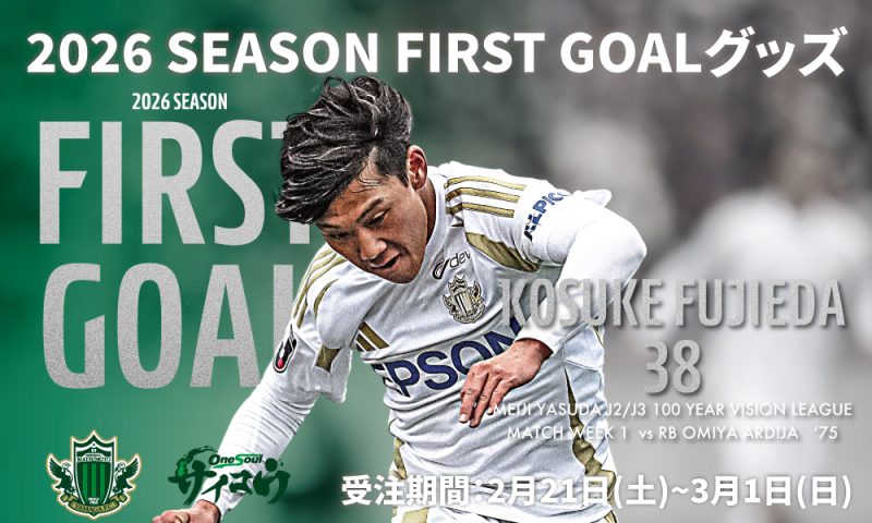 先日の明治安田J2・J3百年構想リーグ第1節 RB大宮アルディージャ戦にて、藤枝康佑選手が記念すべき明治安田J2・J3百年構想リーグのチーム初ゴールを決め、これを記念したグッズの販売が決定いたしましたので、お知らせいたします。