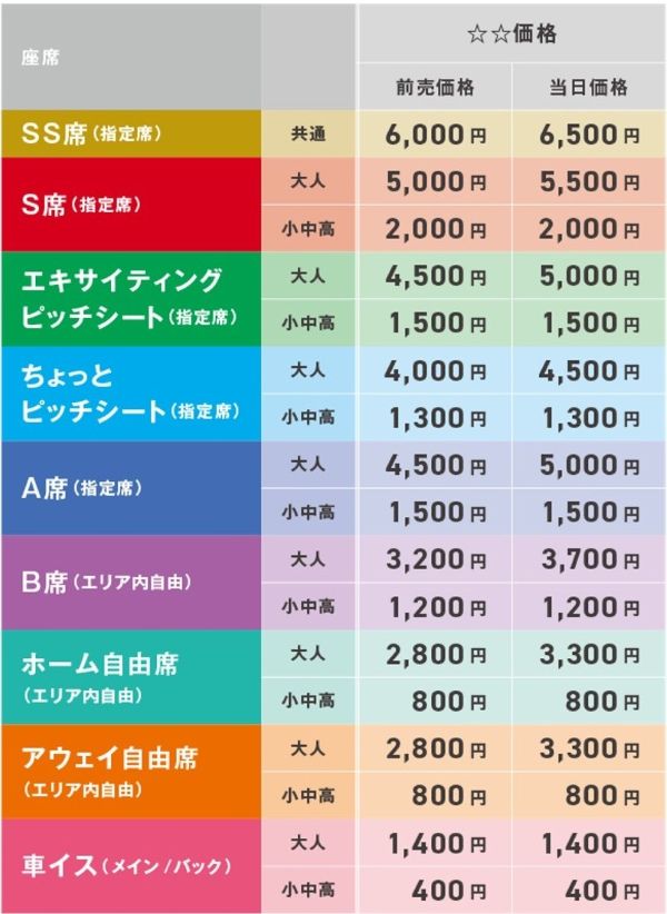 • 席種ごとに販売枚数がございます。予定枚数に達し次第、販売を終了いたします。