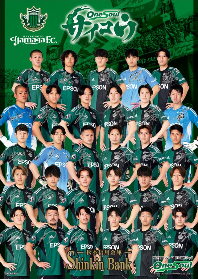 ※3~7月は明治安田J2・J3百年構想リーグ版1,000枚、8月~2月は26-27リーグ版1,500枚をプレゼントいたします。ポスターはお1人さま1枚とさせていただきます。