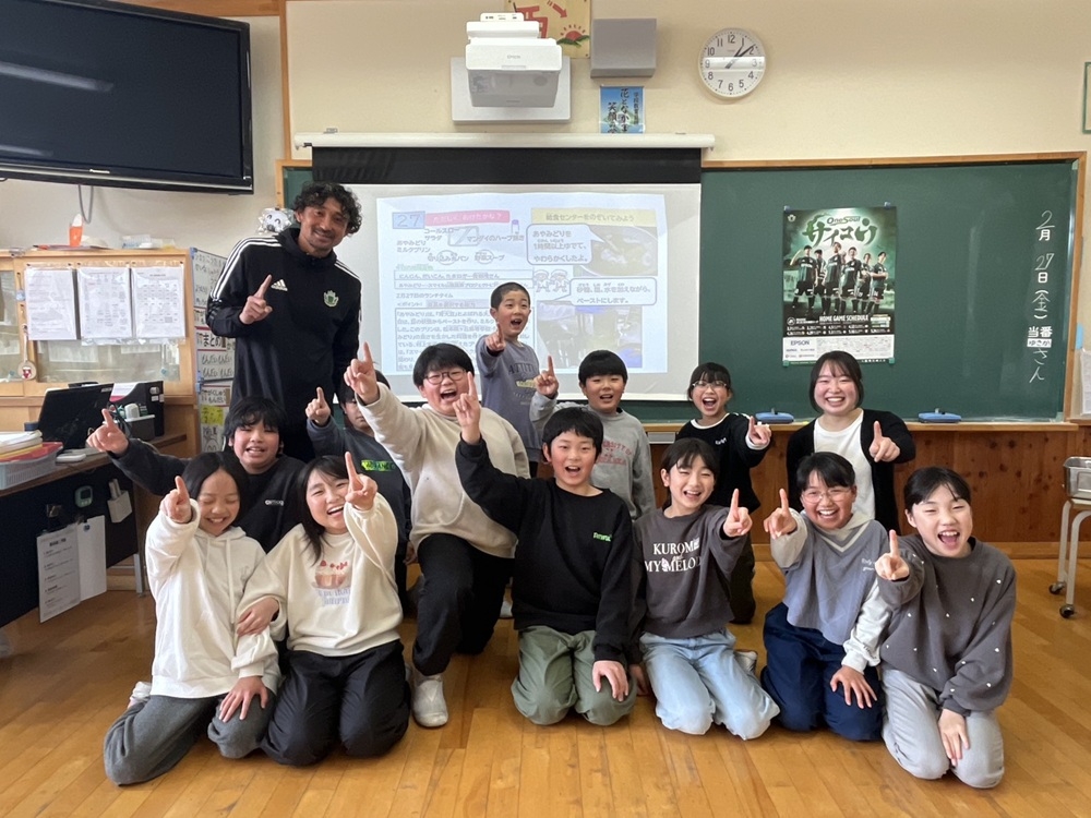 2月27日(金)「スマイル山雅農業プロジェクト」を通して収穫した青大豆「あやみどり」を、松本市四賀小学校の給食に青大豆あやみどりを使用したメニューをご提供いただき、松本山雅FCよりアカデミーロールモデルコーチ 橋内優也が参加しましたのでご報告いたします。