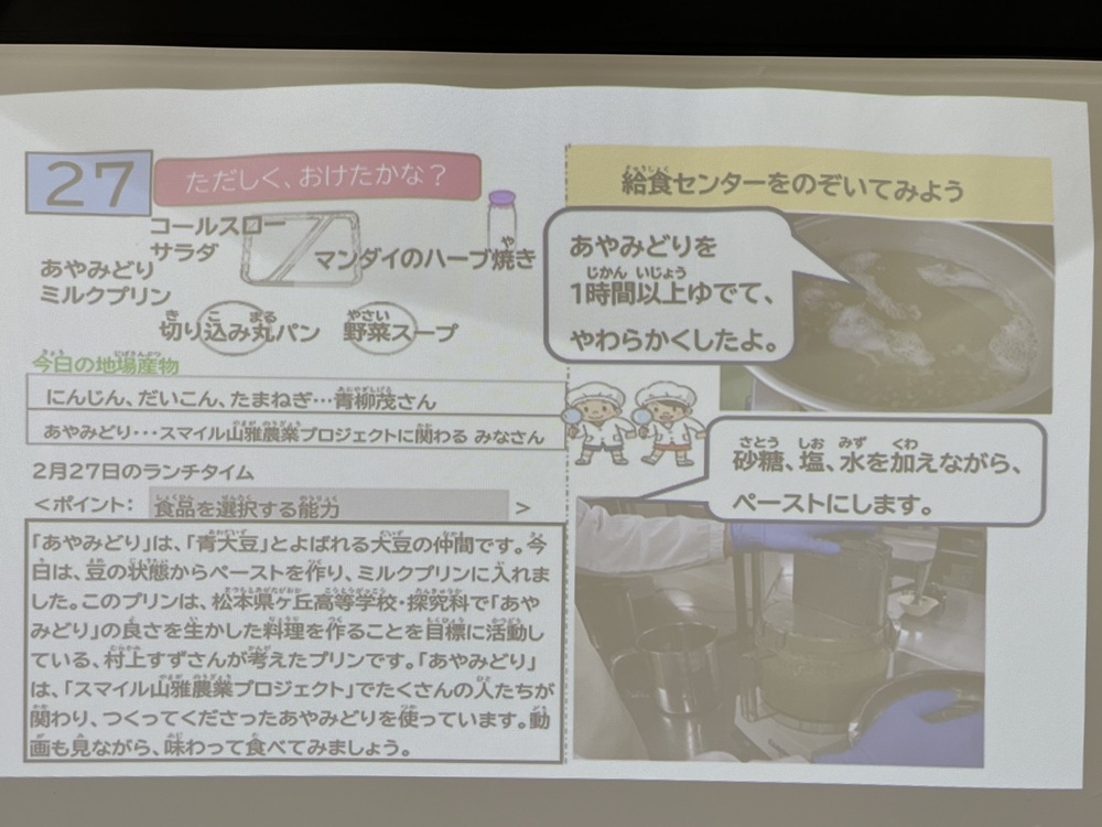 【スマイル山雅農業プロジェクト】松本市四賀小学校の給食に青大豆あやみどりを使ったメニューを提供していただきました【報告】