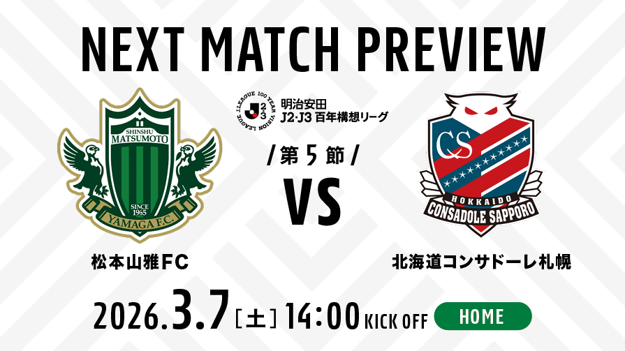 | 対戦 | 松本山雅FC vs 北海道コンサドーレ札幌 |