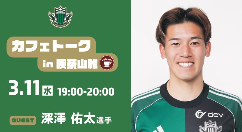 3/11(水)カフェトーク(深澤 佑太選手)in 喫茶山雅 開催のお知らせ