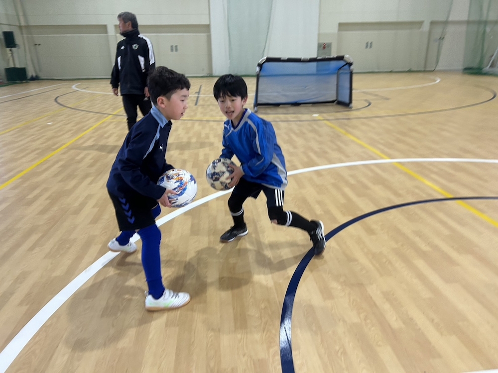 ドリブルやリフティングといった基礎的な練習を行いました。