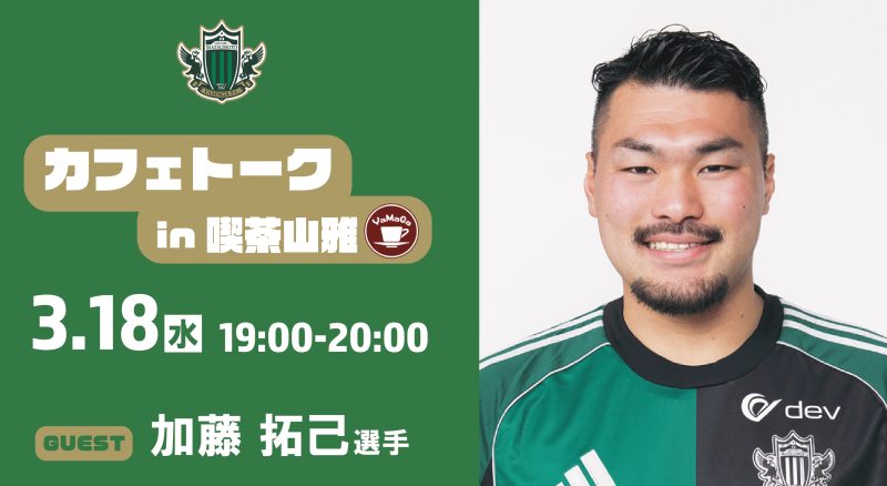 3/18(水)カフェトーク(加藤 拓己選手)in 喫茶山雅 開催のお知らせ