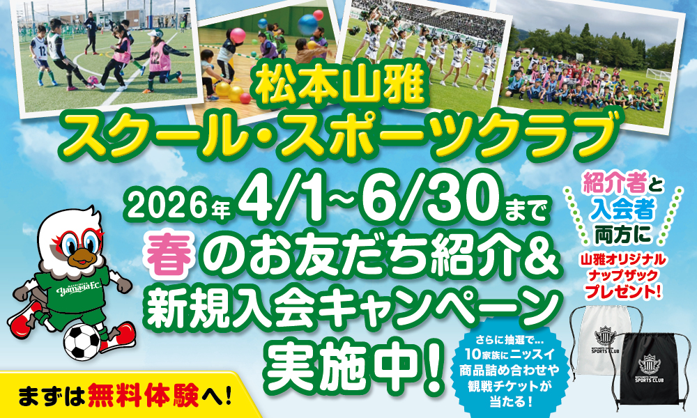 このたび、松本山雅スポーツクラブでは、下記の要項にて「2026年度 春の新規入会&お友だち紹介キャンペーン」を実施いたします。