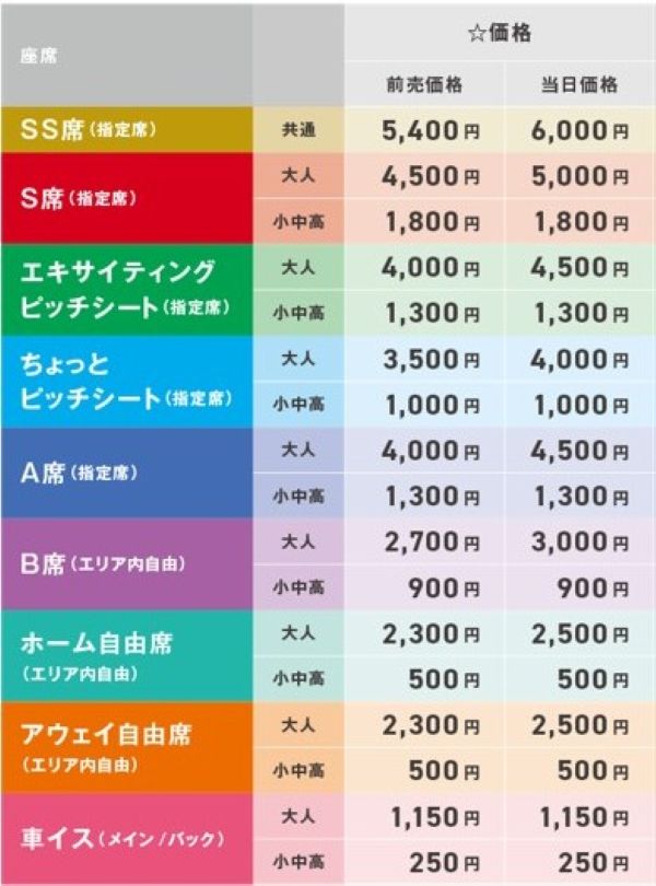 | エキサイティングピッチシート 大人 | 指定 | 4,500円 | ◯ |