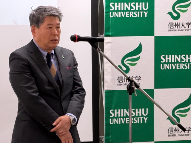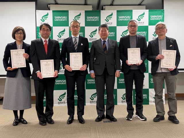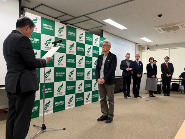 信州大学中村宗一郎学長様から5名へ修了証書授与があり、客員研究員、参画企業代表の皆様へ慰労の挨拶がありました。