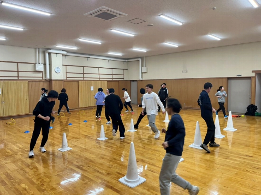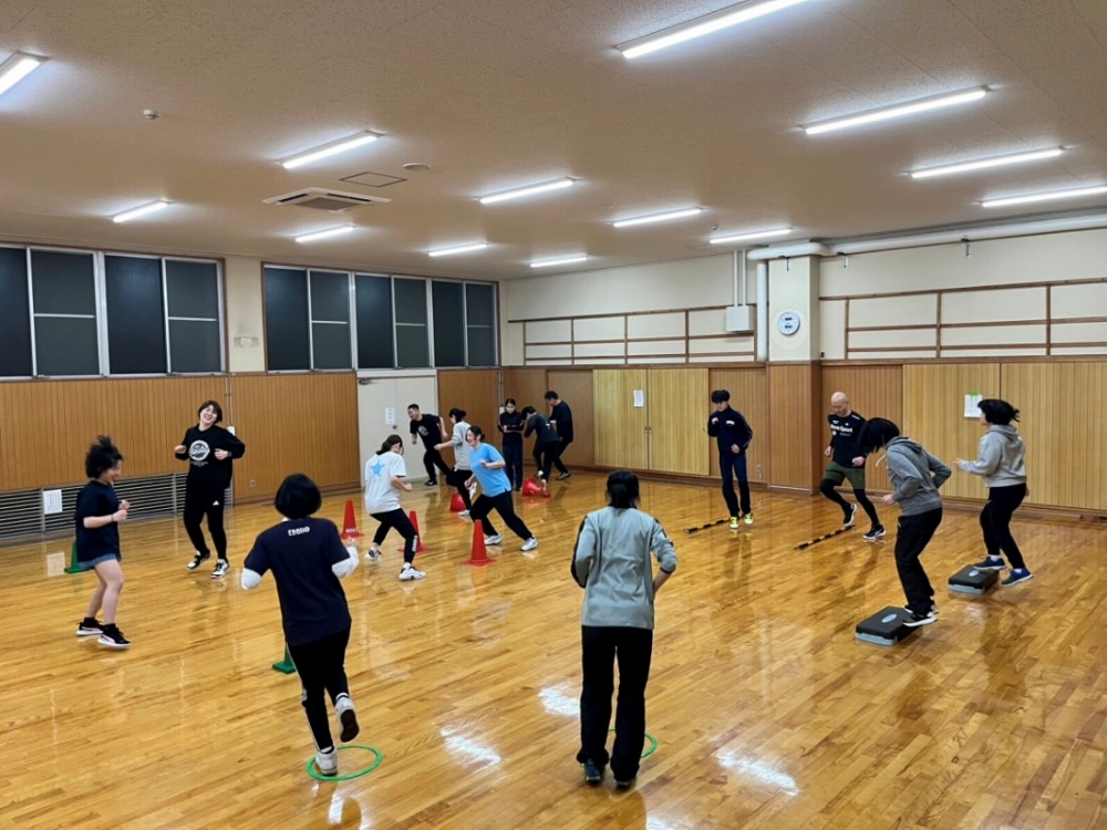 身体のバランスを安定させる体幹トレーニングや筋力増強を目指すトレーニングに加え、ラダートレーニングなども様々な種目を織り交ぜながら実施いたしました。