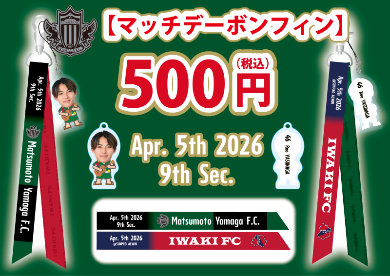 第9節いわきFC戦のマッチデーボンフィンも選手の顔写真とイラストがデザインされたチャームが付属!