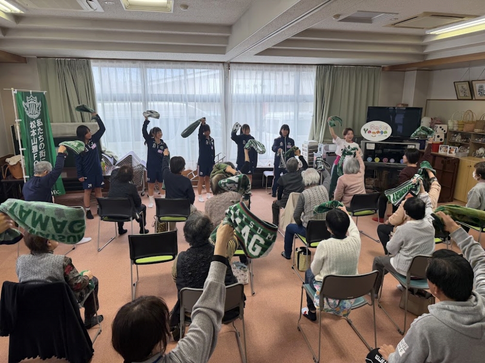 3月25日(水)「2025年度 第19回松本山雅FC元気育成・健康増進プログラム スマイル山雅 健康運動教室」が島立地区福祉ひろばで行われ、松本山雅FCより小林陽介レディース監督とレディースU-15の5名の選手が参加しましたのでご報告いたします。