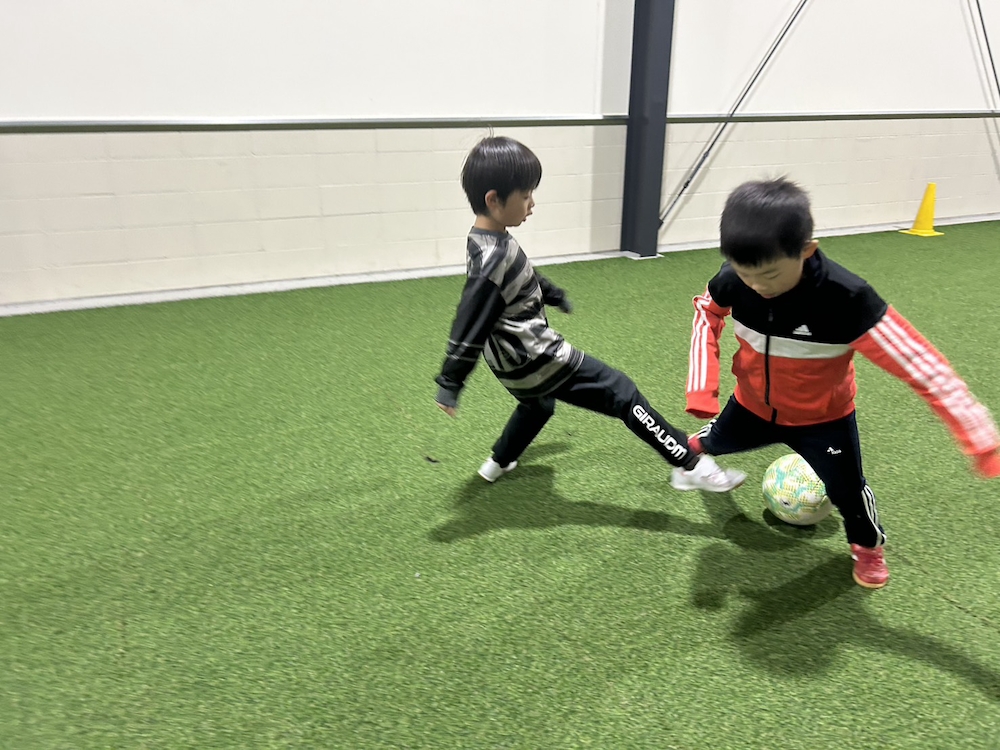 ボールタッチ、ドリブル、1対1の練習を行いました。