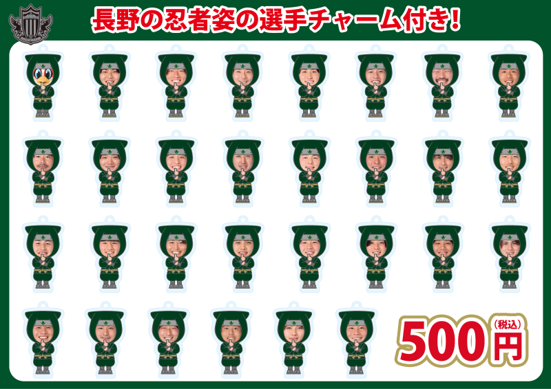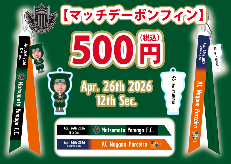 第12節長野パルセイロ戦のマッチデーボンフィンも選手の顔写真とイラストがデザインされたチャームが付属!