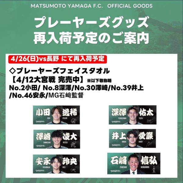 4/26(日)長野戦 新グッズ販売のお知らせ