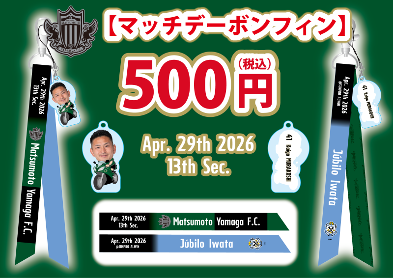 4月29日(水・祝)ジュビロ磐田戦に新グッズを発売いたしますので、お知らせいたします。