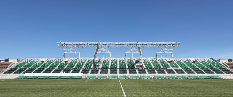 サンプロ アルウィン バックスタンド観客席改修工事:座席取り付け完了のお知らせ