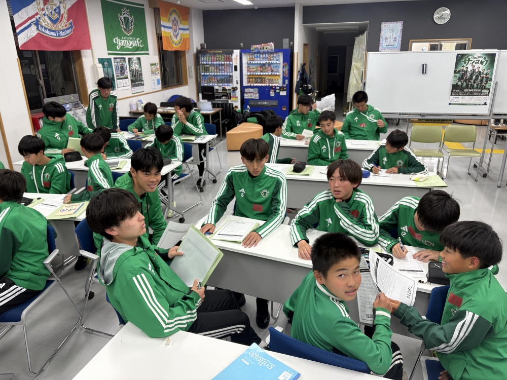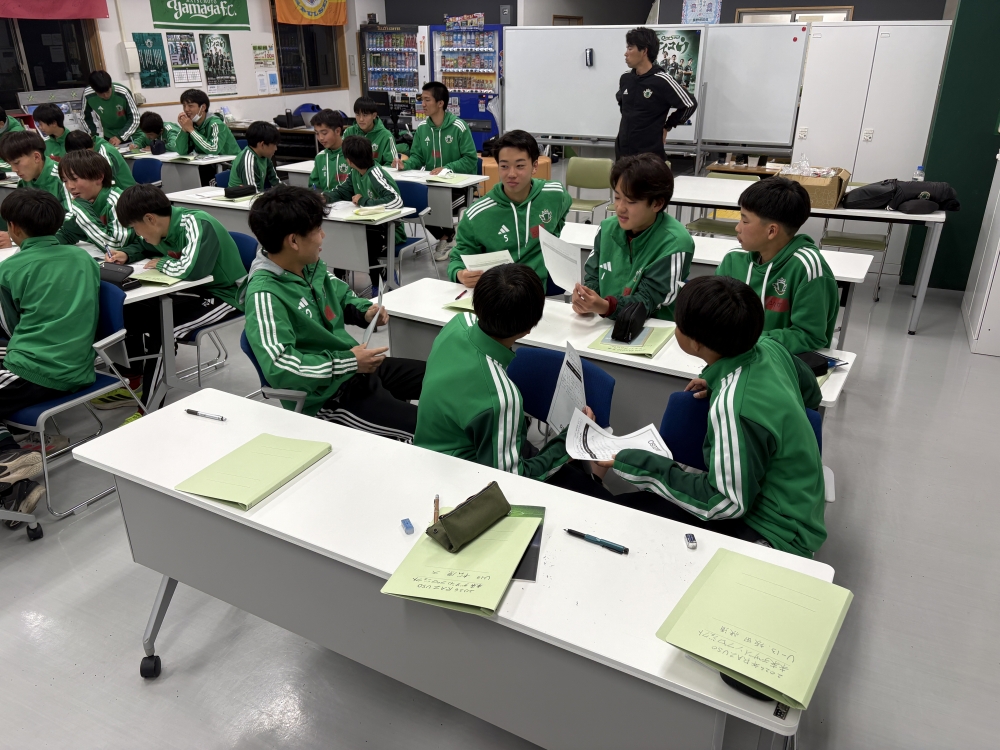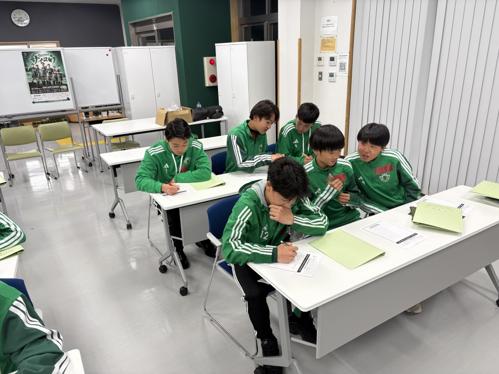 Future Vision終了後にはレポートを記入し、その後、U-18(高校1年生)とU-13の選手がグループを組み、グループワークを行いました。