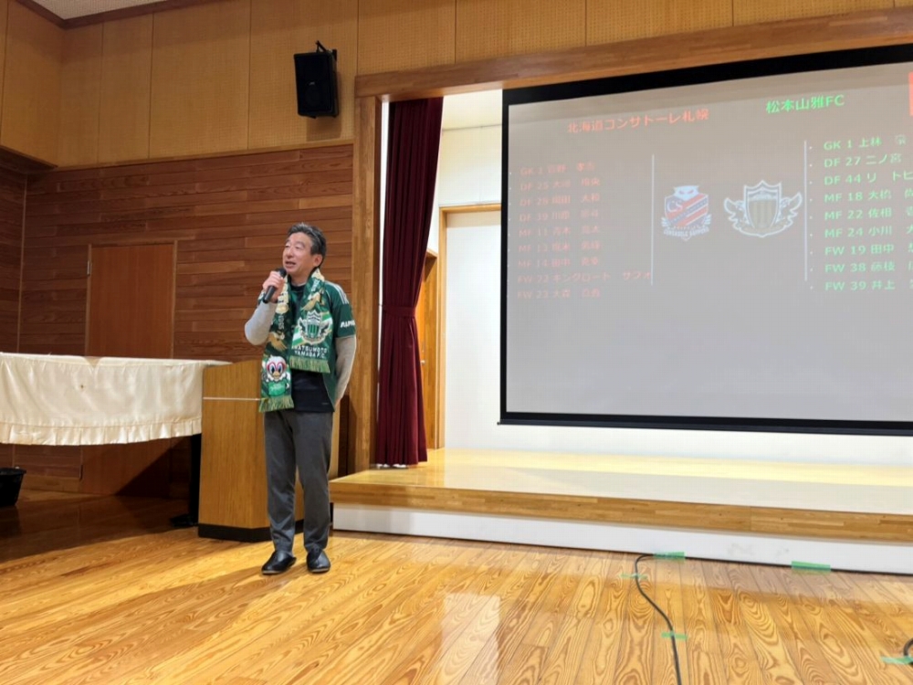 4月18日(土)塩尻市大門地区センターにて北海道コンサドーレ札幌戦「パブリックビューイングin塩尻市」を開催しましたので、ご報告いたします。