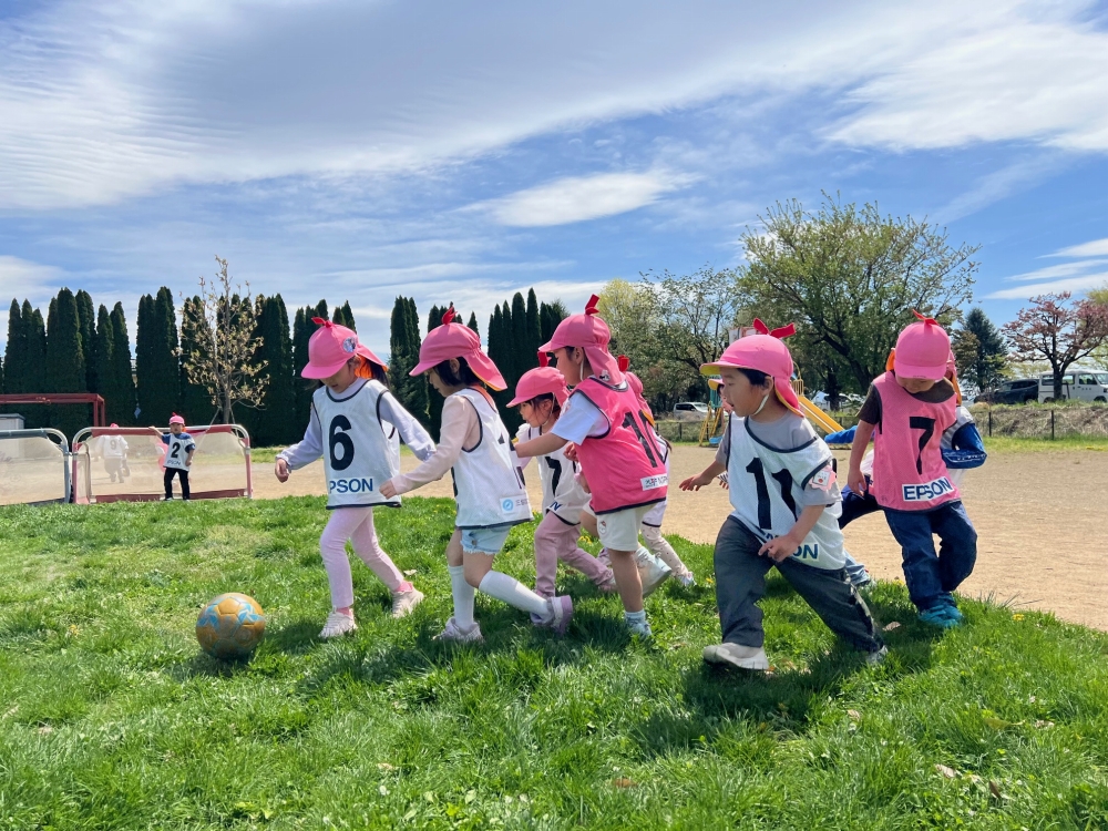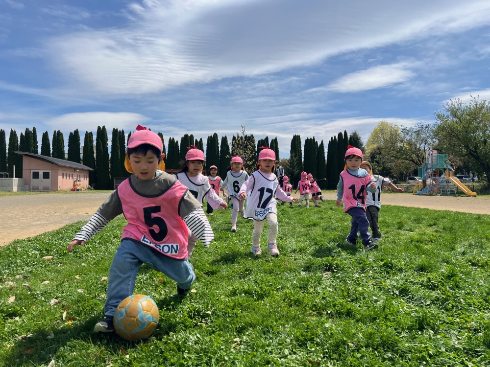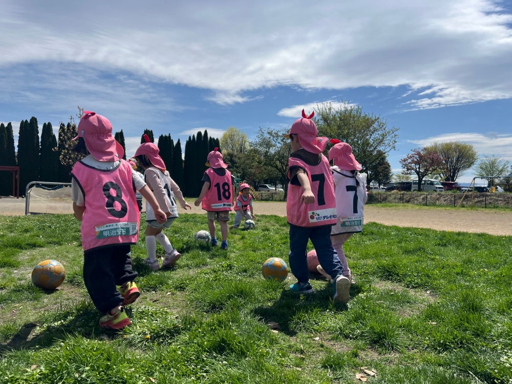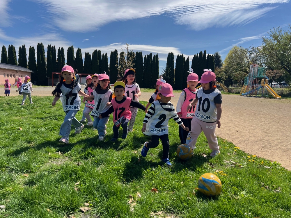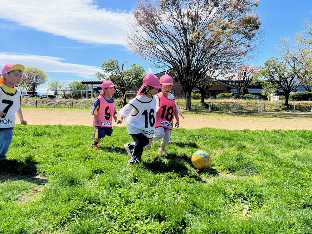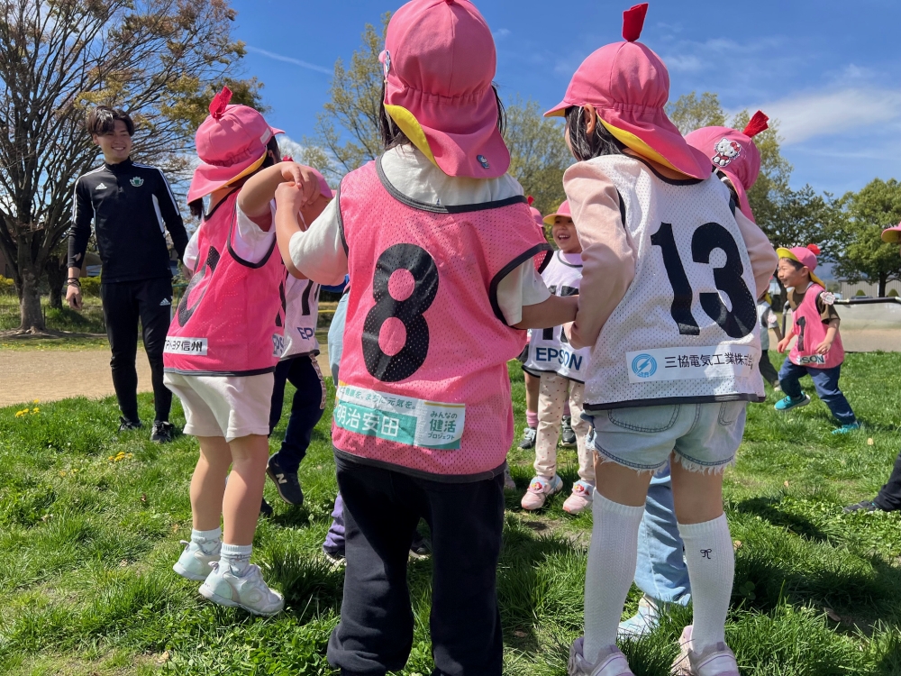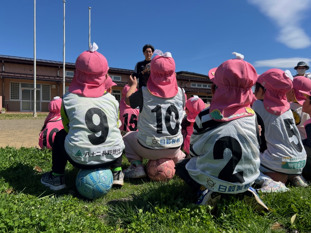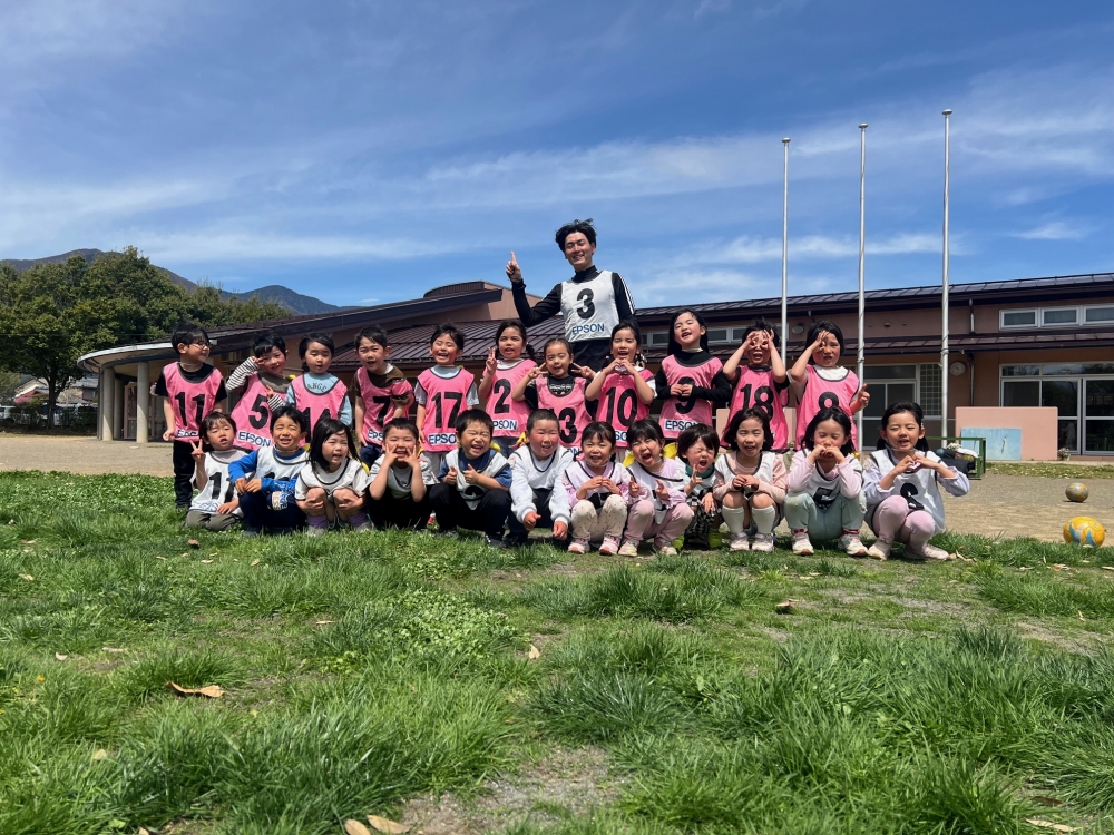 4月22日(水)松本市のみつば保育園の年中さん・年長さんを対象に巡回指導を行い、松本山雅FCよりスクールコーチの西牧とU-12監督の藤本が参加しました。