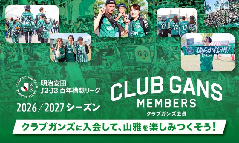 明治安田J2・J3百年構想リーグ&2026/2027シーズンクラブガンズ会員受付終了のお知らせ