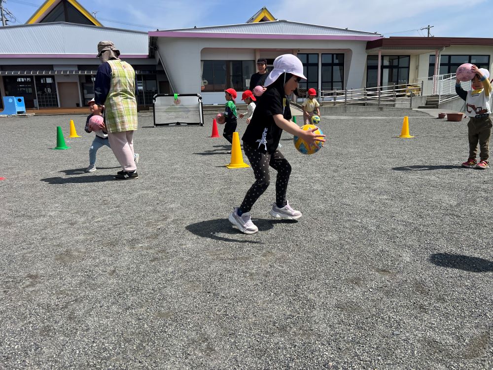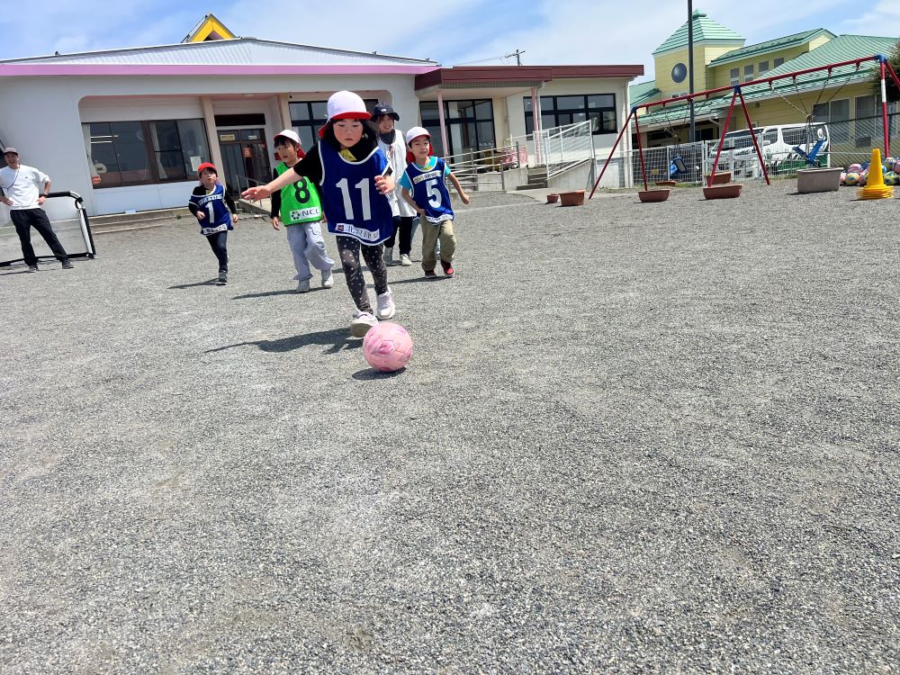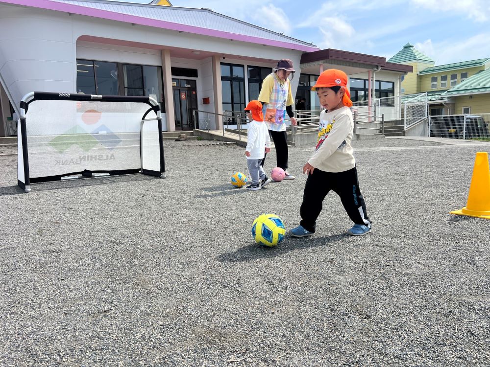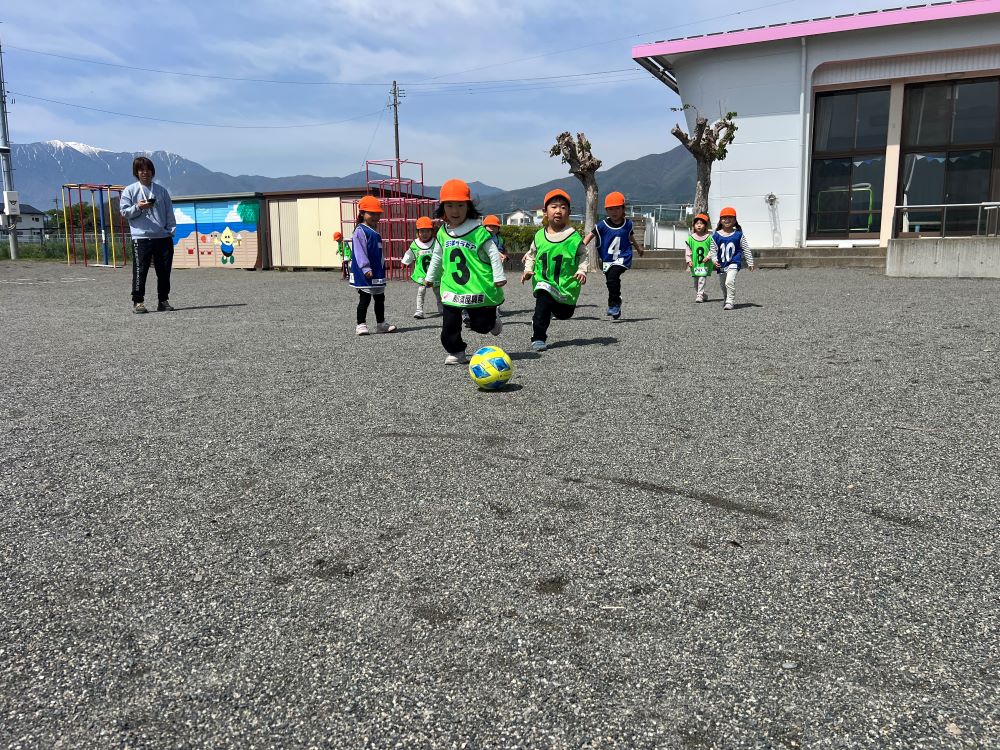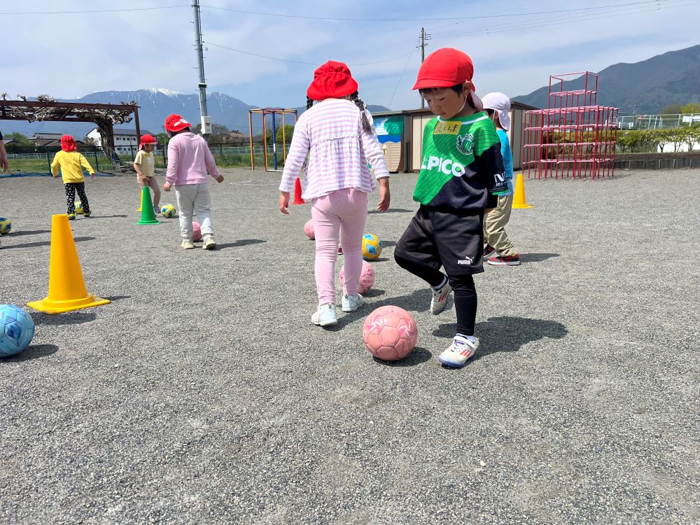 4月28日(火)西部保育園の年中・年長さんを対象に巡回指導を行い、松本山雅FCよりジュニアユース監督の胡桃澤とスクールコーチの河野が参加しました。