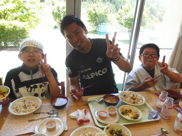 サッカー教室が終わったらみんなで給食タイム。