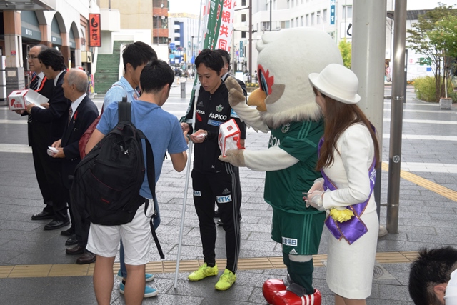 10月1日(土)松本駅お城口(東口)階段下で行われた「赤い羽根共同募金運動」に小林ホームタウン担当、ガンズくんが参加しましたのでお知らせいたします。