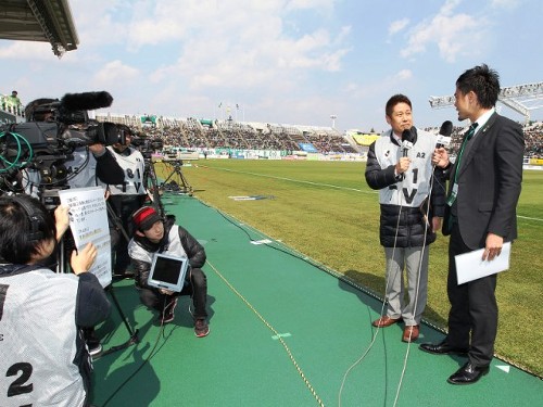 そして今年も試合当日の俺の仕事はあんま変わってないんやけど、今年から『アルWIN TV』を放送室じゃなくて、ピッチ横から放送してんねん☆★