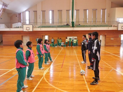 まずは栄小では、子ども達と一緒にサッカーをしたり、子ども達に話をしたり給食を一緒に食ったりしたな!!
