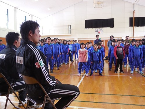 栄村では、栄小学校と秋山小学校、栄中学校に行って講話とかサッカーを通して生徒とめっちゃ触れ合ってきました。