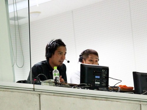 コスチュームもクラブの色鮮やかなユニフォームから、解説の自前の服へ。