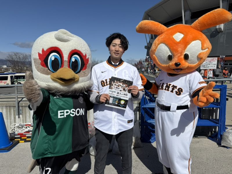 長野県出身のプロ野球選手、読売ジャイアンツの直江大輔選手とジャビットが応援に駆けつけてくれたんだ!