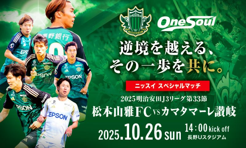 10月26日(日)長野Uスタジアムで開催されるカマタマーレ戦は松本山雅FCオフィシャルパートナーの株式会社ニッスイ様による史上初の冠試合「ニッスイスペシャルマッチ」が開催されます。