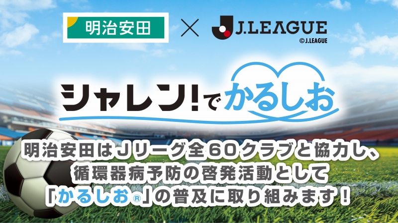 明治安田は、Jリーグと協働し、循環器病予防の啓発活動「シャレン!でかるしお」に取り組んでいます!