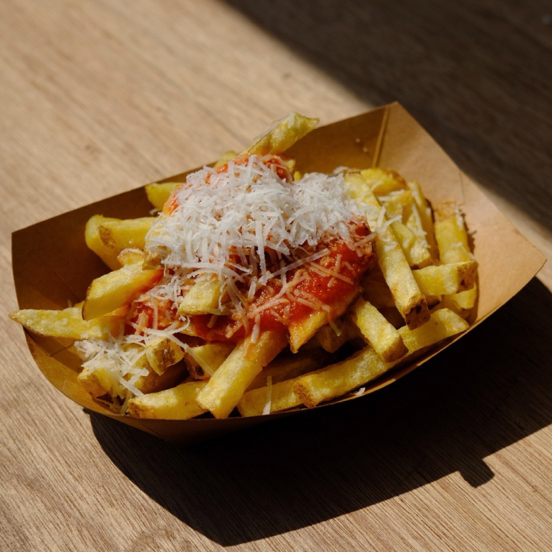 自家栽培した無農薬じゃがいもを使ったフライドポテトを自家製ソースと一緒に味わえます