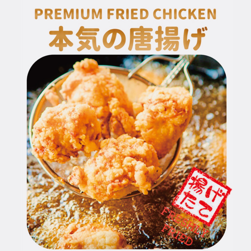 定番、本気の唐揚げ、抹茶フレーバー唐揚げ、チーズが伸びるハットグ、牛肉か野菜を選べるコロッケまで揚げたてに全振りの専門店です