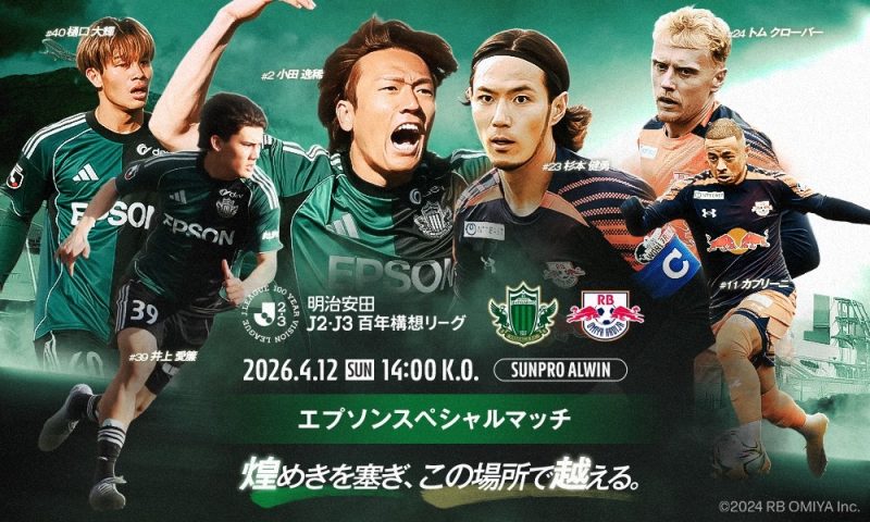 4月12日(日)に行われる明治安田J2・J3百年構想リーグ 第10節 RB大宮アルディージャ戦は、ユニフォームパートナーであるセイコーエプソン株式会社様ご協力のもと「エプソンスペシャルマッチ」を開催いたします。