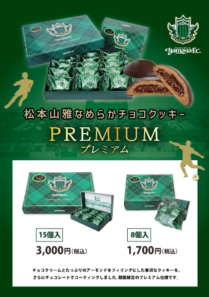 山雅だるま、バス缶、まる天、ポップコーンのほか、松本山雅オリジナルクッキーを販売いたします。