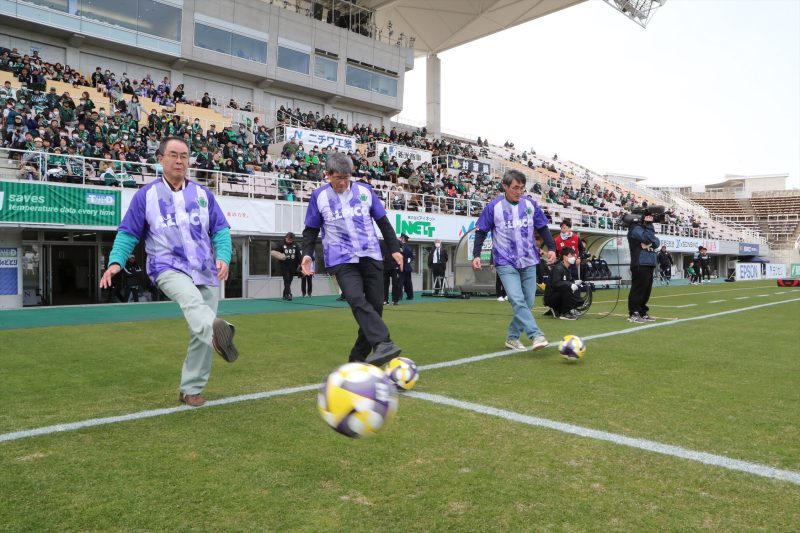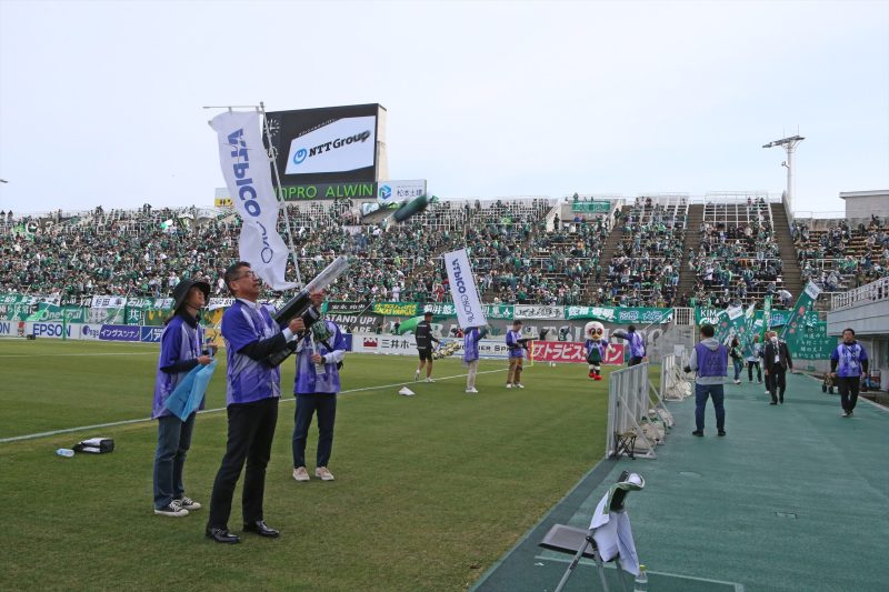 アルピコホールディングス株式会社 代表取締役社長 佐藤裕一様、アルピコ長野トラベル株式会社主催アウェイ応援ツアーに参加された2名様にキックインセレモニーを行っていただきます。