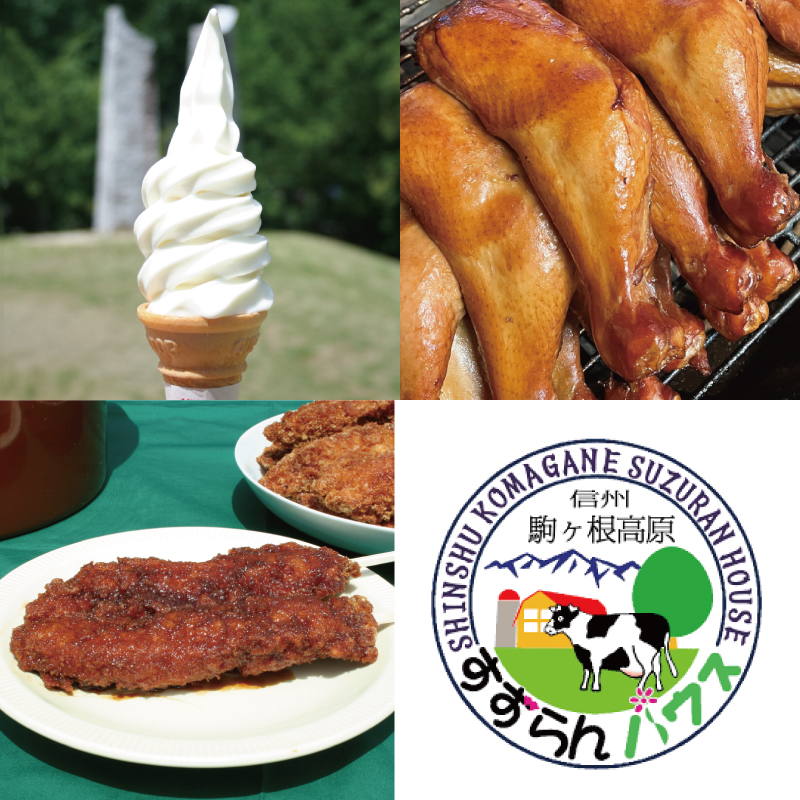 | おすすめ | すずらんソフトクリーム 450円 スモーク・チキン 700円 駒ヶ根ソースかつ棒 500円 |