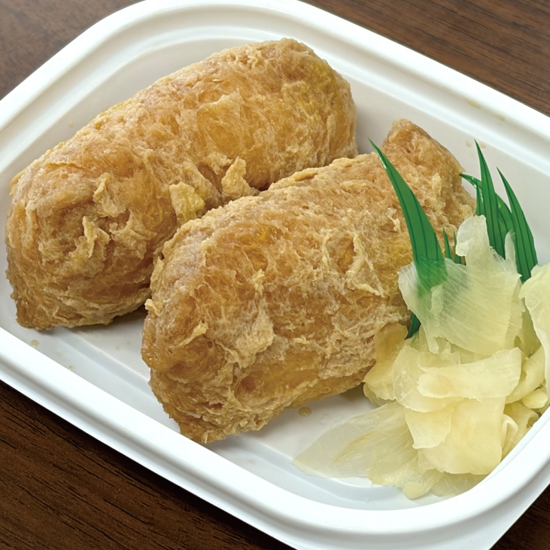 からしの効いた稲荷寿司。あまじょっぱい味に、からしのピリッとアクセントがやみつきになります!