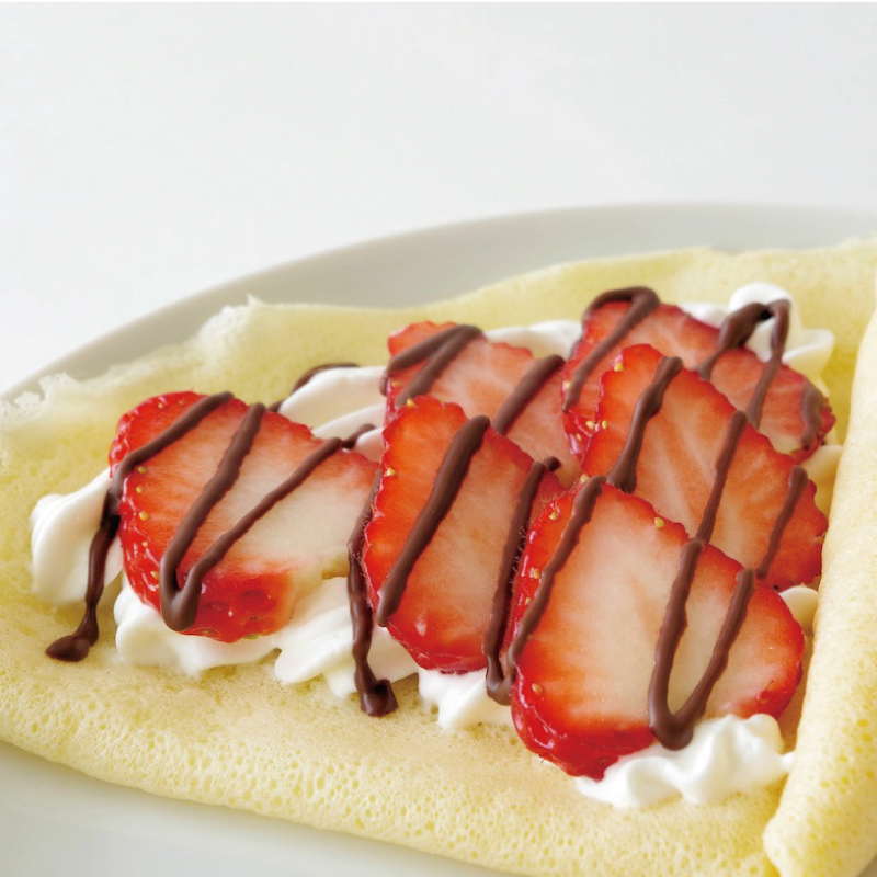 高級小麦粉を数種類ブレンドし、新鮮な卵と牛乳、たっぷりのバターで作ったこだわりの生地はしっとりもちもち。少しお待たせするかもしれませんが、1枚1枚丁寧に焼き上げた専門店のクレープをぜひお試しください